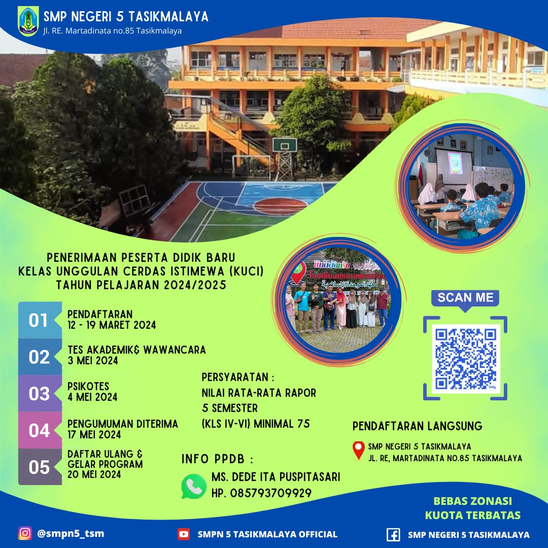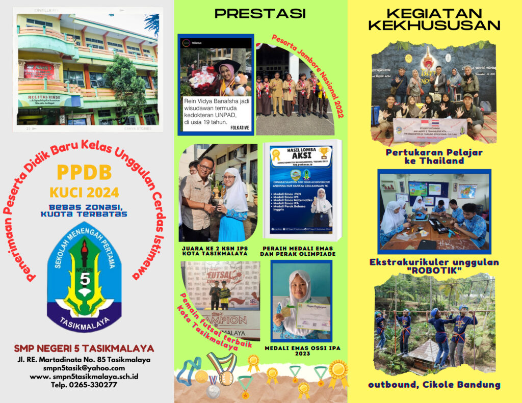 • SMP NEGERI 5 TASIKMALAYA MERUPAKAN SEKOLAH TERBAIK DENGAN DILANDASI IMAN DAN TAKWA MEMBENTUK INSAN YANG KREATIF, UNGGUL , BERKARAKTER DAN BERWAWASAN LINGKUNGAN |